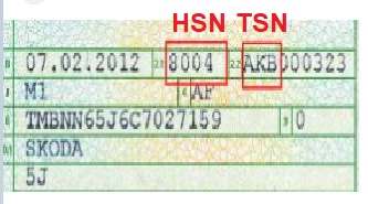 Die HSN ist ein vierstelliger, numerischer Code, der den Fahrzeughersteller eindeutig zuordnet. Man findet die Schlüsselnummer im Teil I der Zulassungsbescheinigung unter dem Punkt 2.1. Falls Sie für Ihr Kfz noch einen Fahrzeugschein besitzen, die bis zum 30. September 2005 ausgestellt wurden, dann finden Sie die Herstellerschlüsselnummer im Feld zu 2
